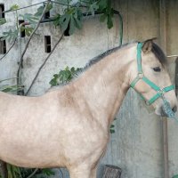 Dieser hübsche Falbe wurde als Jährling gekauft um dem selbst gezogenen Fohlen einen Spielpartner zu bieten. Er wurde im April 22 geboren und Röntgenbilder vom Kauf liegen uns vor. Derzeit misst er ca. 156m, er wird wohl an die 1,60m kommen. Der junge Hengst hatte eine robuste Aufzucht , ist pirofrei und kann zur weiteren Aufzucht auch noch in Portugal verbleiben.
